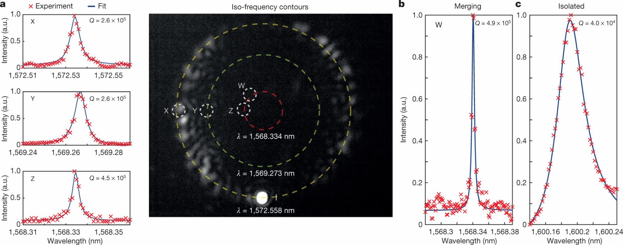 图题2:谐振泵浦激发下的远场辐射等频率面;通过对反射谱的拟合测量Q值,在实验中直接观测达4.9×105