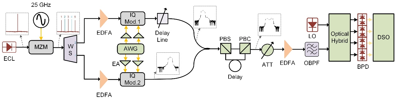 图2. 全光合成100GBaud NFDM信号实验系统框图