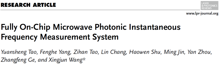 近日,区域光纤通信网与新型光通信系统国家重点实验室王兴军教授课题组在集成微波光子学研究领域取得突破性进展,该团队采用光电混合集成技术方案,研制出世界上首个光-电完全芯片化集成的微波光子功能系统,并实验展示了对超宽频段微波信号瞬时频率的快速、精准测量。相关成果以“Fully on-chip microwave photonic instantaneous frequency measurement system”为题于2022年8月12日发表在Laser & Photonics Reviews期刊上。